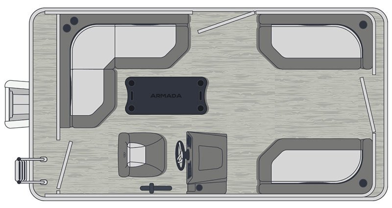 This pontoon model has a standard console with engine control, standard flywheel and basic instrumentation.