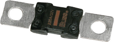 Most economical fuse for 100 to 300 Amp circuit protection. Interrupt capacity 2000 Amps DC and maximum voltage is 32 DC.