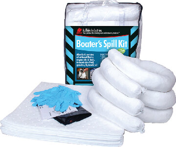Absorbs and contains all oil-based fluids: engine oils and fuels, transmission fluid, gasoline, hydraulic oil and kerosene. Compact and portable kit fits in marina lockers and small storage areas above and below deck. Use for accidental spills or leaks in and around the boat, marina or fuel dock. Recycled polypropylene pads and booms will float on fresh and salt water, absorbing oil-based liquids without absorbing water. Zippered bag. 1 Kit absorbs up to 5 gallons of oil-based liquids.