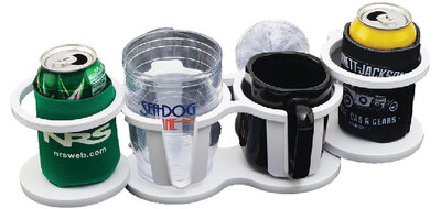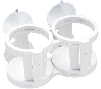 Drink Holder with suction cups expand to accomodate more cups while conserving space when not in use. Suction cups offer a flexible solution, mounting easily to most surfaces. Accommodates drink containers up to 3-1/2\" in diameter. Impact resistant injection molded nylon construction.