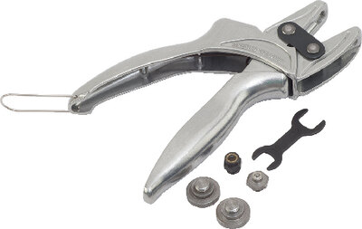 Includes a die wrench and three removable dies for various snap caps and studs.Aluminum/steel construction. Not for use with heavy duty stainless...