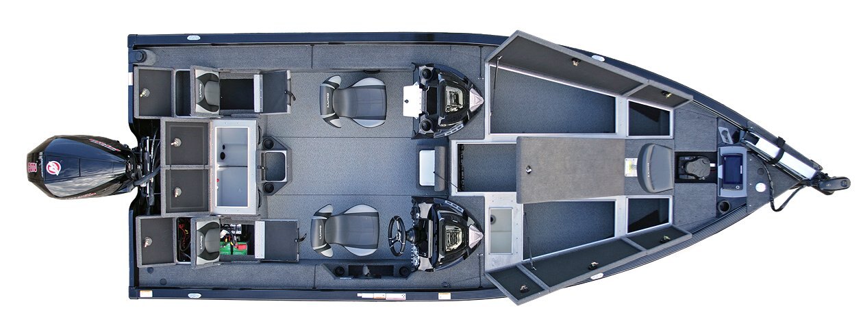 Other Interior Features Aft Casting Platform Battery Holders - 3 Bilge Pump (1 Manual/Automatic) Bow Casting Platform Bow Deck Mounting Pad Bow Trim Switch Cooler & Cooler Storage Drink Holders Fire Extinguisher Integrated Ruler w/Storage On-the-Go Rod Storage Self-Draining Splash Pan Bow Trolling Motor Plug (24/36V) SportTrak Coaming Wood Free Construction