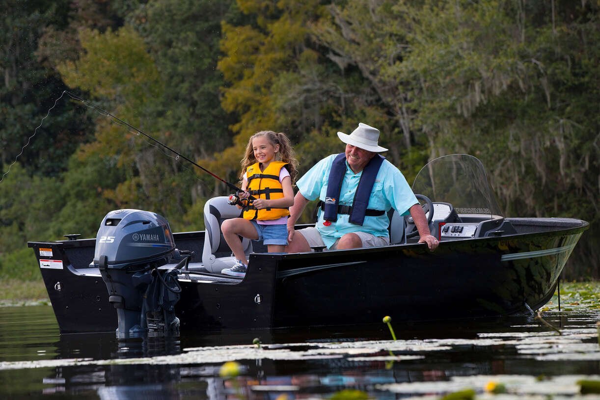 | Yamaha’s F25 is so light, powerful, and feature-rich that it won a coveted NMMA® Innovation Award shortly after introduction. As the lightest 25 horsepower outboard available—two-stroke or four-stroke—it features the highest power to weight ratio in its class and comes in several variations to suit your needs. From power trim and tilt, tiller or remote control, 15 or 20-inch shaft and now in pearlescent white or traditional grey! |