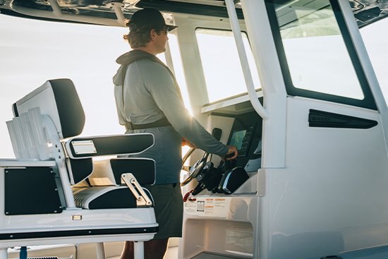 Digital Throttle & Shift (DTS) controls deliver smooth, quiet shifting and instant throttle response, with zero hesitation. You can further enhance handling and performance with available Electric Steering for multi-engine boats. Whisper-quiet and ultra-responsive, the system consumes less than half the electrical power as electro-hydraulic steering. (Single-engine Electric Steering coming later this year.)