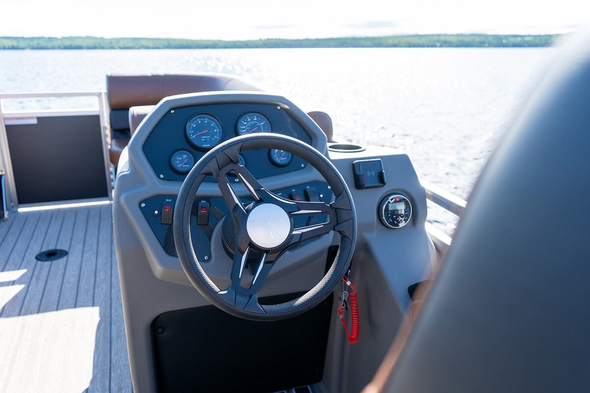 The Drakkar is our most comfortable and well-equipped pontoon. Along with a spacious swim platform, it is equipped with 2 magnificent captain's chairs and lounge seats that will delight all pleasure boaters who are looking to spend long hours out on the water. With all the standard equipment on this pontoon, you will not find anything comparable at this price!