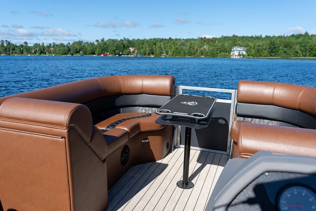 The Drakkar is our most comfortable and well-equipped pontoon. Along with a spacious swim platform, it is equipped with 2 magnificent captain's chairs and lounge seats that will delight all pleasure boaters who are looking to spend long hours out on the water. With all the standard equipment on this pontoon, you will not find anything comparable at this price!