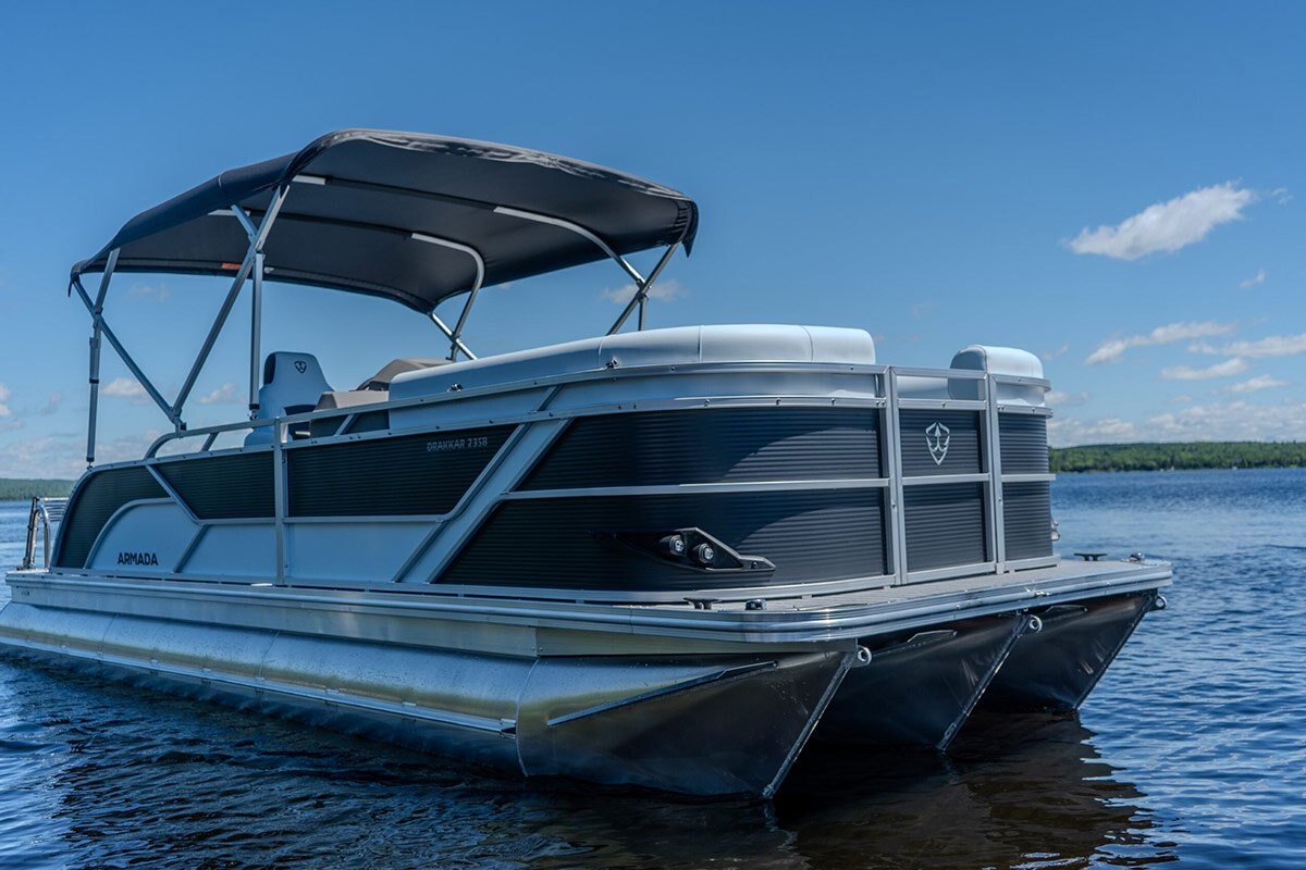 The Drakkar is our most comfortable and well-equipped pontoon. Along with a spacious swim platform, it is equipped with 2 magnificent captain's chairs and lounge seats that will delight all pleasure boaters who are looking to spend long hours out on the water. With all the standard equipment on this pontoon, you will not find anything comparable at this price!