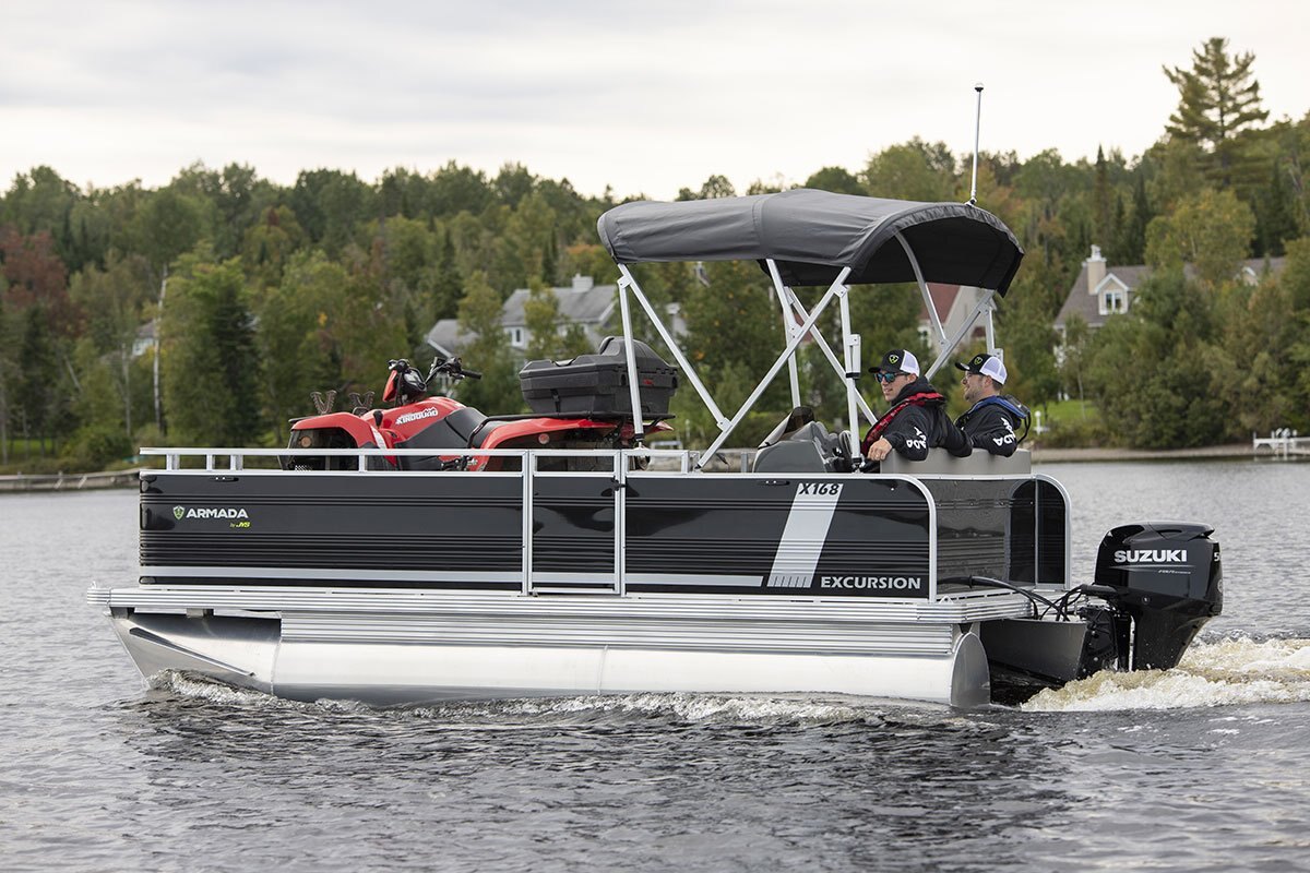 The Excursion is our transport pontoon that will assist you with your toughest jobs. It offers a large loading capacity and plenty of space. Just picture it with your ATV and building supplies!