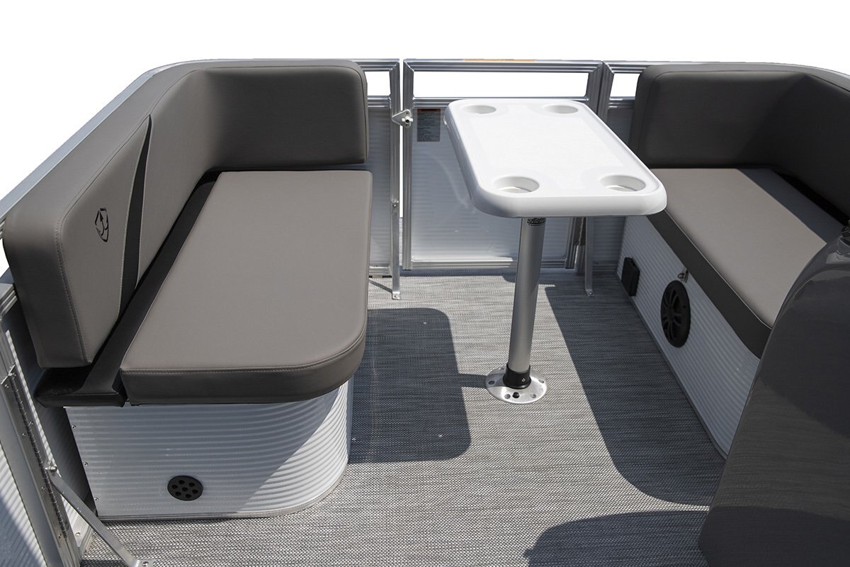 This pontoon model has a standard console with engine control, standard flywheel and basic instrumentation.