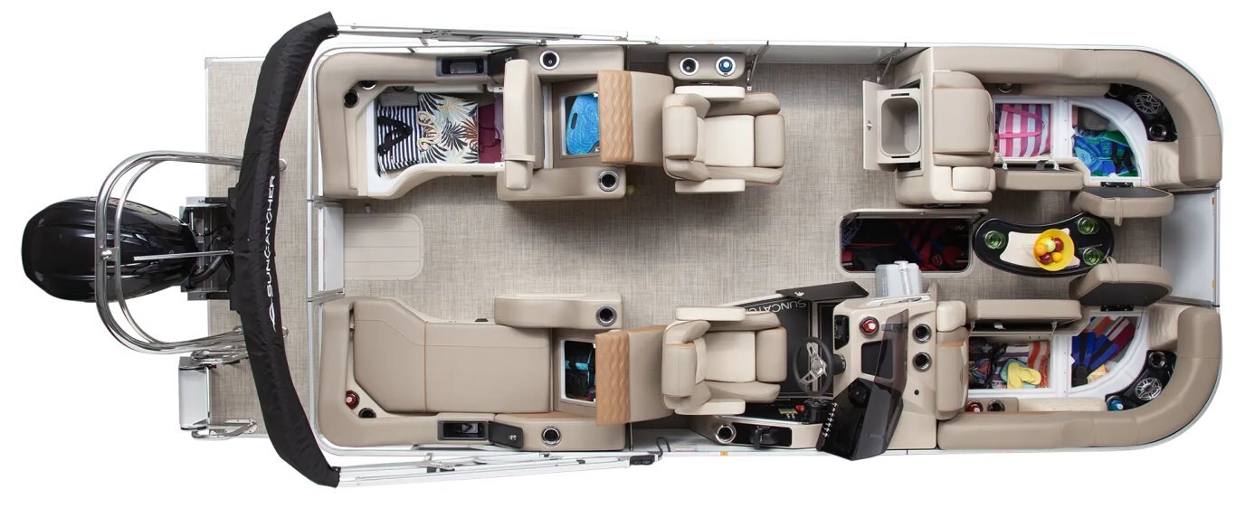 2026 SunCatcher Elite 322SS BlackUNDER SEAT STORAGE