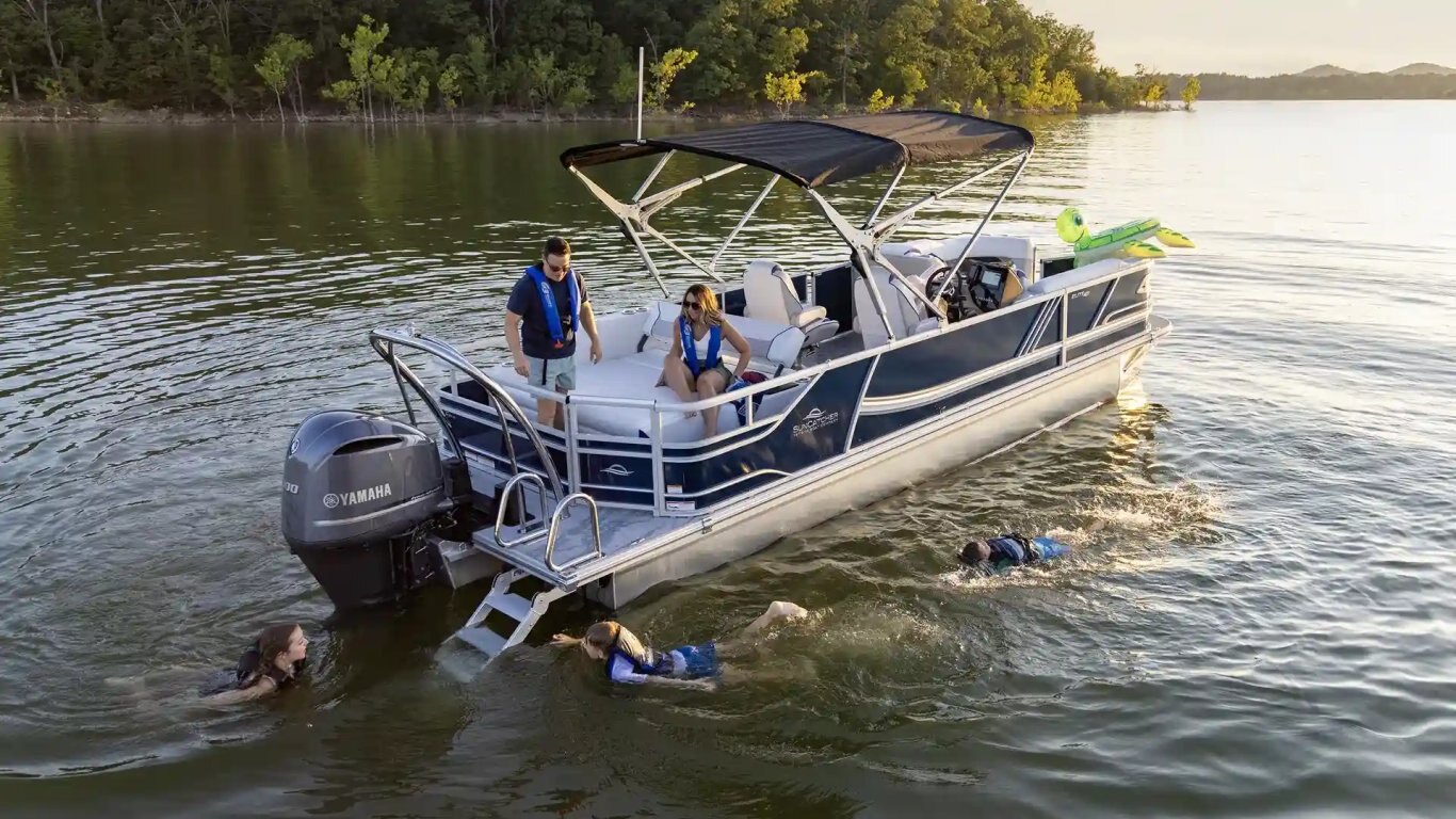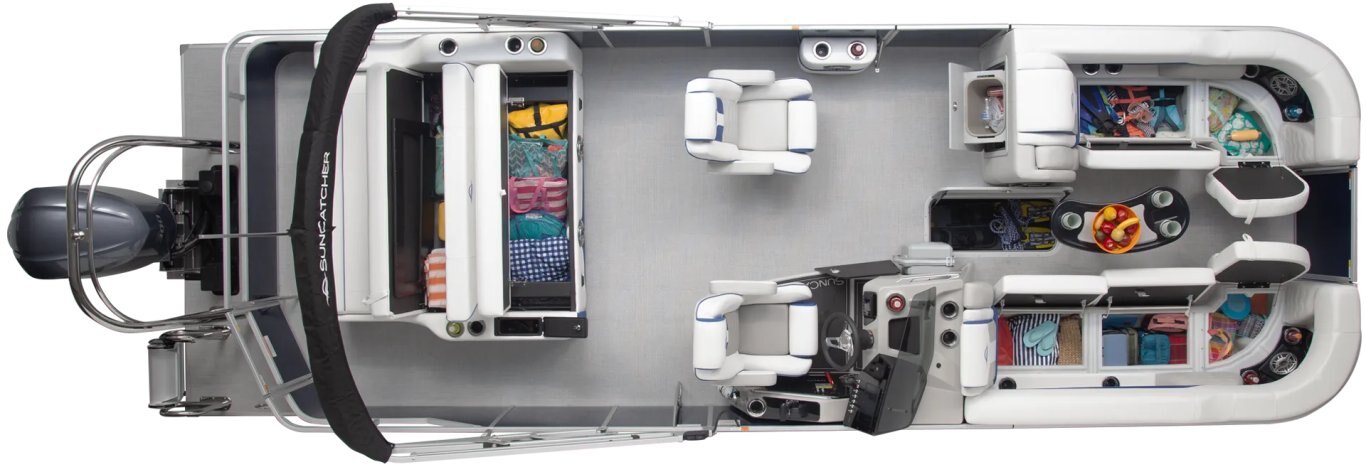 The 2″ main rail provides sturdy support and enhanced safety for passengers. Thoughtfully integrated SunCatcher branding adds a touch of style while reinforcing the boat’s quality and craftmanship.