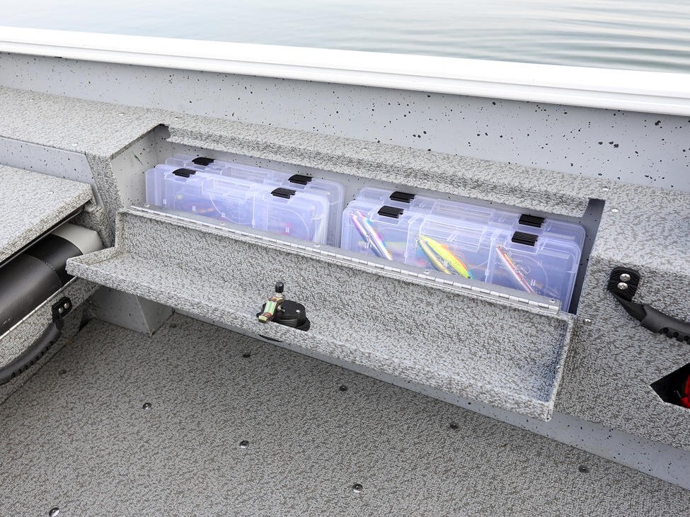 Other Exterior Features 4-Step Folding Pan Mounted Boarding Ladder Aluminum Corner Castings Bow & Stern Eyes Composite Transom Dual Trak Gunwale Factory Engine Rigging Standard Integrated Power Strake (IPS) Hull Level Flotation Compliance Stainless Steel Flip-Down Cleats (4) Transhield Cover Twin-Plated Bottom (Bow to Amidship) Hull Drain Plug Splash Rails Single-Tone Paint