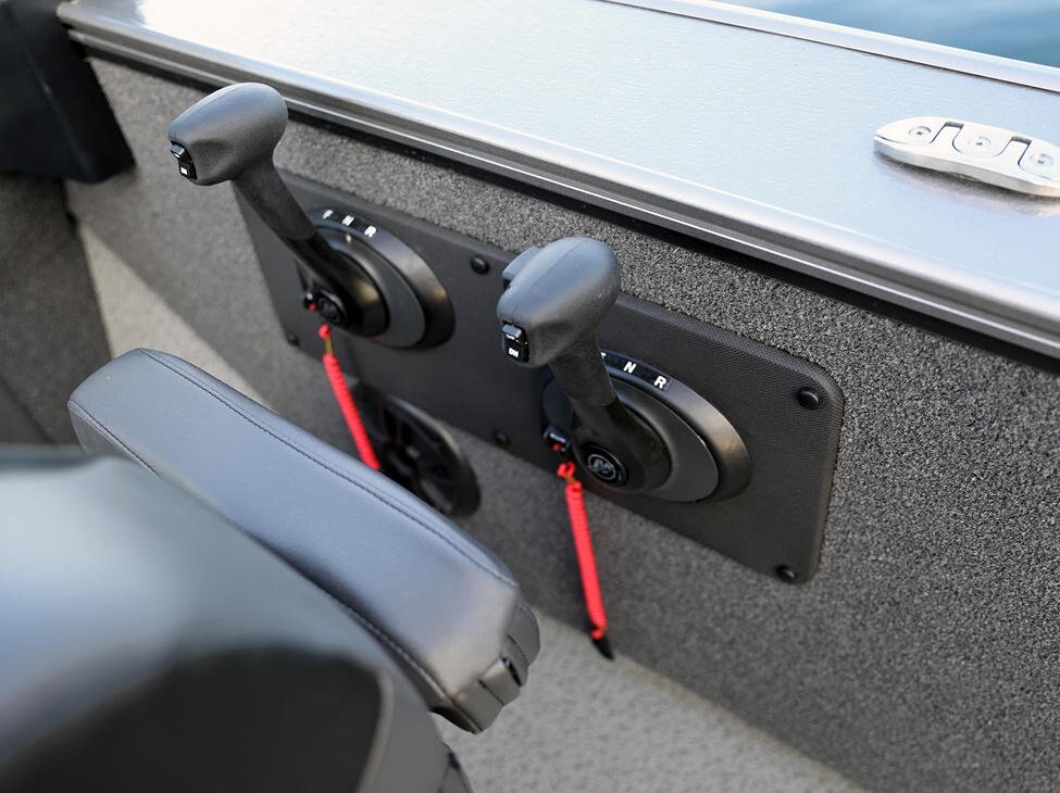 Consoles / Instrumentation / Lighting 12V Power Receptacle Automotive Style Fuses Custom Dual Consoles w/Walk Through Windshield Full Lighted Instrumentation Horn Interior LED Lighting Lockable Glove Box Navigational Lighting No Feedback Steering w/Tilt Standard Battery Switch