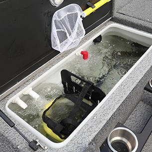 Storage Battery Storage Compartments Bow Cargo Nets Built-In Bow Insulated Cooler Cockpit and Bow on-the-go Rod Storage Console Storage Lockable In-Floor Center Rod Storage (15 Tubes) Lockable Port Rod Storage (4 Tubes) Lockable Storage Port Console Walk-Way Storage Drawer Under Console Storage Drawers (Port and Starboard) Advanced Water Control Door Frames