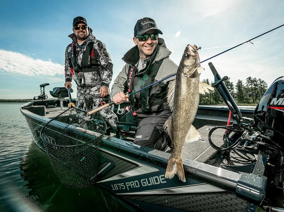 This 18 plus aluminum tiller fishing boat is designed by some of the most hardcore fishermen at Lund. The 1875 Lund Pro Guide has every fishing feature imaginable in an aluminum tiller fishing boat. Including two-rod storage compartments an at-your-fingertips command console that stores tackle trays and electronics and a livewell and baitwell right at the tiller control position. The Lund 1875 Pro Guide tiller aluminum fishing boat has it all.