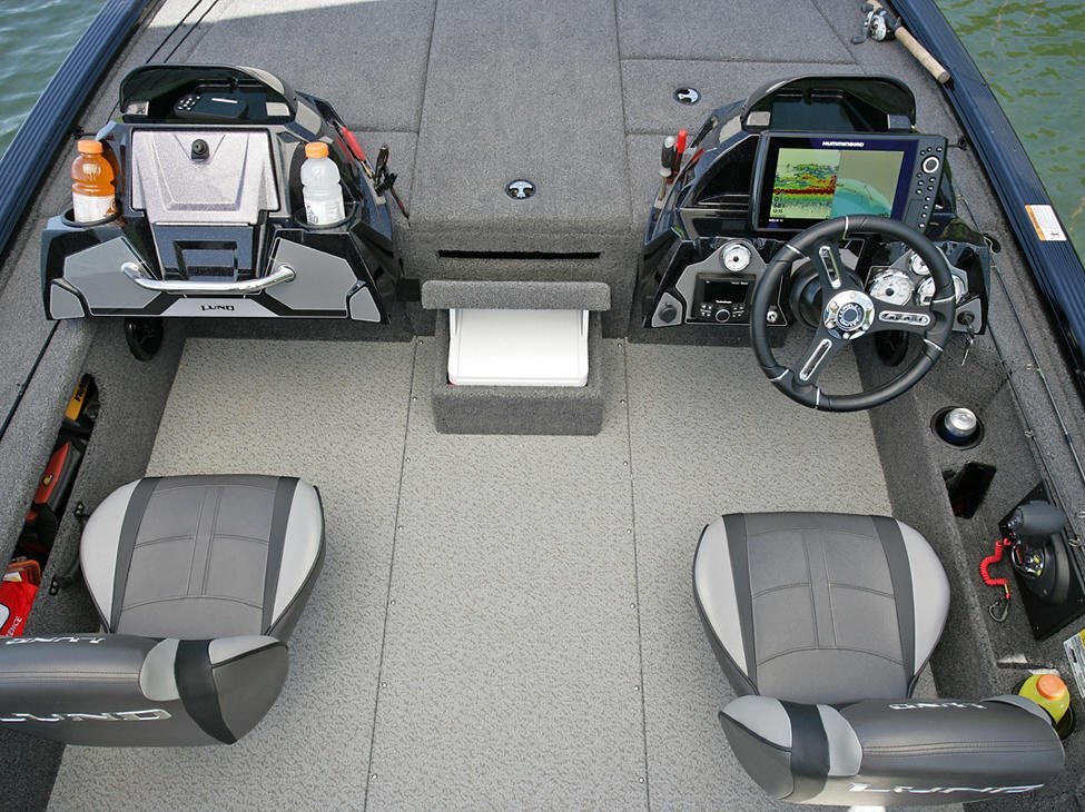 The 2075 Pro-V Musky XS (Muskie) boat is configured in a 4 seat pedestal style version and easily accommodates 3 or 4 musky anglers. Musky boats need massive bow and aft casting decks and the Lund 2075 Pro-V Musky XS delivers. Extra long center musky rod storage dual console option and removable mustky tackle storage boxes designed for big musky lures means the Pro-V Musky has got everything you need to catch the trophy you dream of.