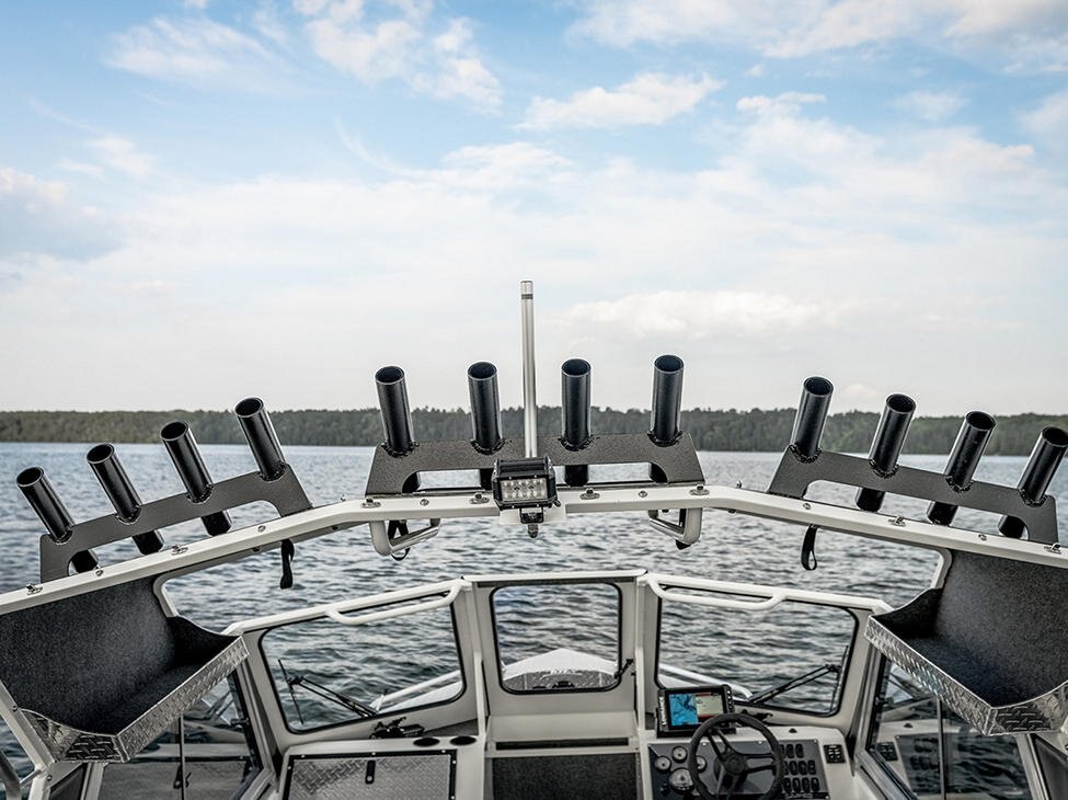 Other Interior Features Full Length Engineered Compound Angle Stringers Full Length Formed In-Hull Side Stiffeners Welded 3" Bow Rails Welded 8" Cleats (5) Welded High Mount Windshield Safety Grab Rails Welded Passenger Safety Grab Rails 1250 GPH Bilge Pump w/Auto Float Switch Battery Switch w/ACR Cockpit Side Wall Rod Holders (3) - Port & Starboard Diamond Tread Bow Step w/Storage Double Walled Recessed Diamond Tread Self-Bailing Bow Dual Battery Set-up Insulated Transom Fish Box Large 2" Fully Welded Bow Scuppers Plastic Conduit Under Bow for Running Wire Quick Connect Kicker Fuel Supply Sound Dampening Foam Wash Down System